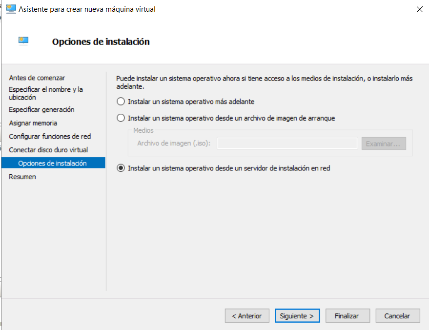 Una vez configurado, podemos realizar una prueba de implementación , tomar en cuenta cuando uno realice pruebas de una maquina virtual es importante habilitar la opción, instalar SO desde un servidor de instalación en red.