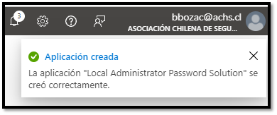 Una vez guardado la aplicación aparecerá el siguiente mensaje.