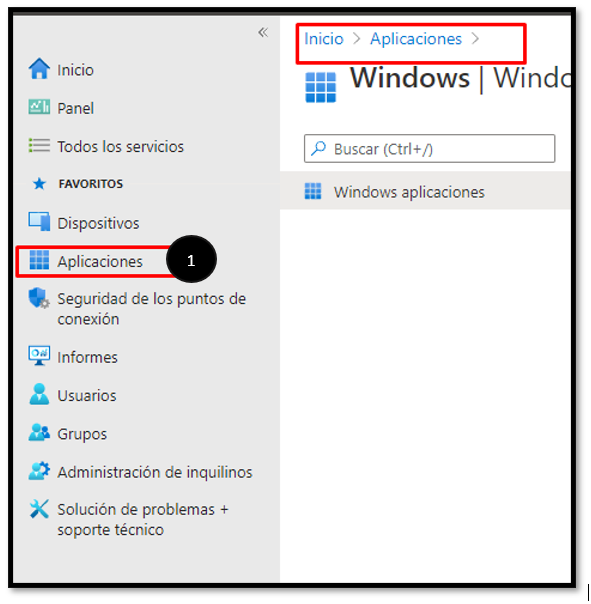Para empaquetar este cliente debemos ingresar al portal de Intune y luego seleccionar Aplicaciones.