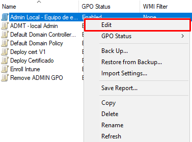 Paso 3. Haga clic con el botón secundario en el GPO y haga clic en editar.