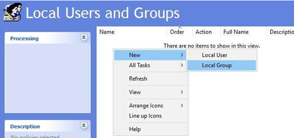 Ahora haga clic derecho en la ventana lateral derecha y seleccione nuevo -> Grupo local.